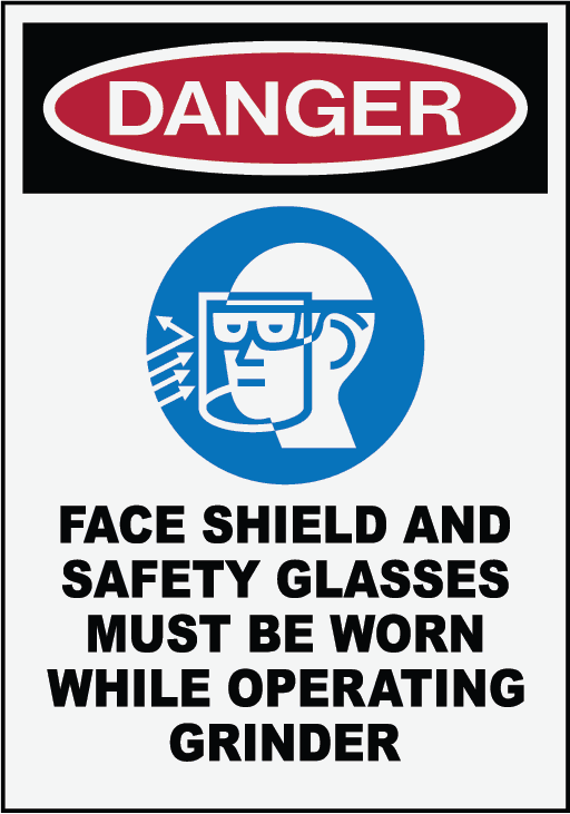 FACE SHIELD AND SAFETY GLASSES MUST BE WORN WHILE OPERATING GRINDER