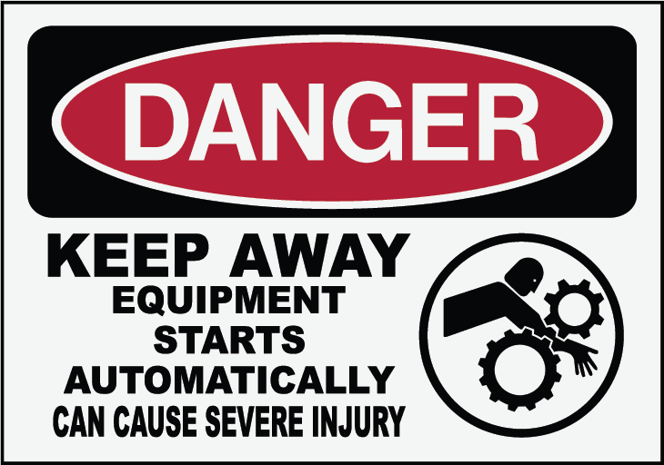KEEP AWAY EQUIPMENT STARTS AUTOMATICALLY CAN CAUSE SEVERE INJURY
