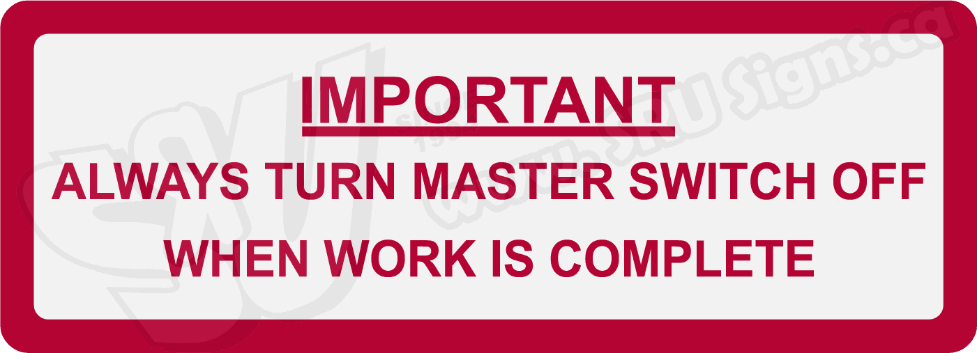 Important Always Turn Master Switch Off When Work is Complete