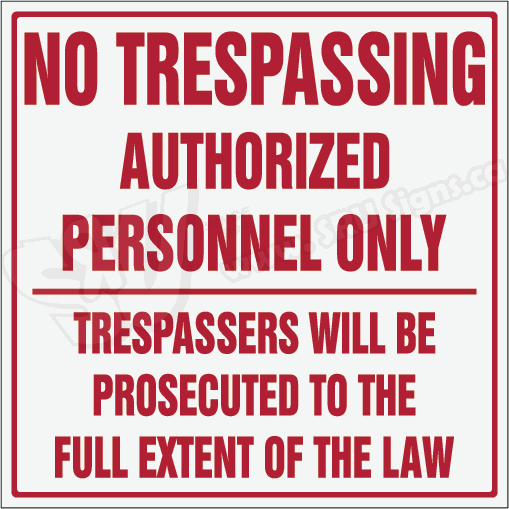 No Trespassing Authorized Personnel Trespassers will be prosecuted to the full extent of the law